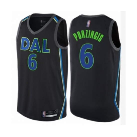 >Men's Dallas Mavericks #6 Kristaps Porzingis Authentic Black Basketball Jersey - City Edition