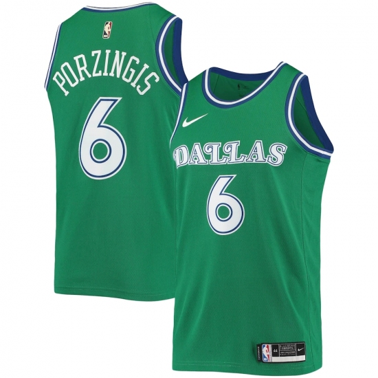 >Men's Dallas Mavericks #6 Kristaps Porzingis Nike Green Hardwood Classics 2020-21 Swingman Jersey