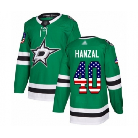 >Men's Dallas Stars #40 Martin Hanzal Authentic Green USA Flag Fashion Hockey Jersey