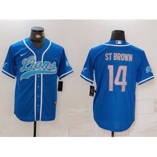 Men's Detroit Lions #14 Amon-Ra St. Brown Blue Cool Base Stitched Baseball Jersey