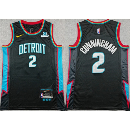 Men's Detroit Pistons #2 Cade Cunningham Black 2025-26 City Edition Stitched Basketball Jersey
