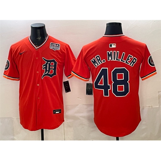 >Men's Detroit Tigers #48 Mr. Miller Orange 2026 Alternate USA 250 Vapor Premier Limited Stitched Baseball Jersey