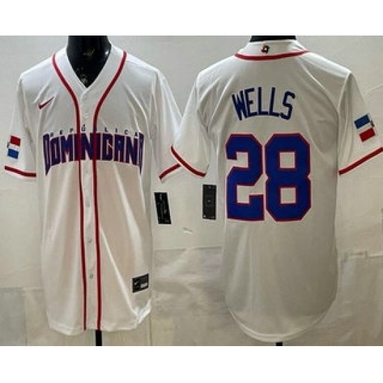 Men's Dominican #28 Austin Wells White 2026 World Baseball Classic Cool Base Jersey