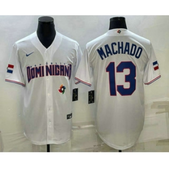Men's Dominican Republic Baseball #13 Manny Machado 2023 White World Baseball Classic Stitched Jerseys
