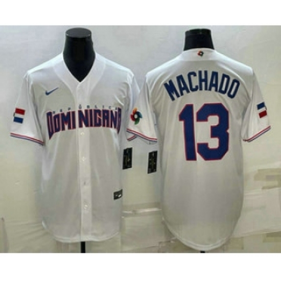 Men's Dominican Republic Baseball #13 Manny Machado 2023 White World Baseball Classic Stitched Jerseys