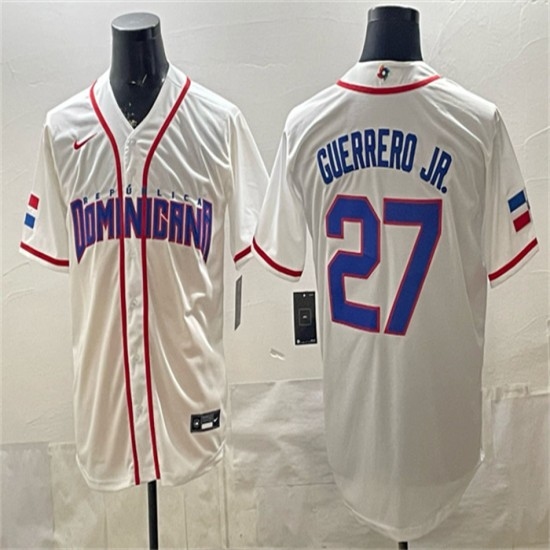 Men's Dominican Republic Baseball #27 Vladimir Guerrero Jr. White 2026 World Baseball Classic Home Stadium Stitched Jersey