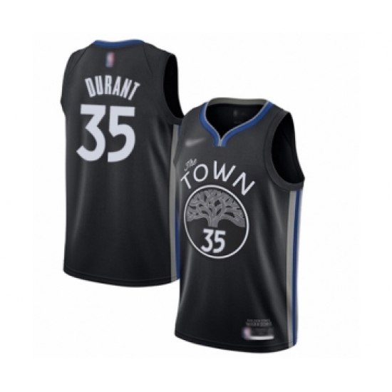 >Men's Golden State Warriors #35 Kevin Durant Swingman Black Basketball Jersey - 2019 20 City Edition