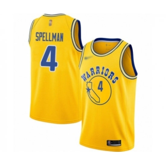 Men's Golden State Warriors #4 Omari Spellman Authentic Gold Hardwood Classics Basketball Jersey