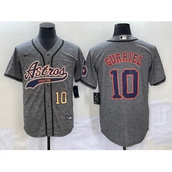 Men's Houston Astros #10 Yuli Gurriel Grey Gridiron Cool Base Stitched Baseball Jersey1