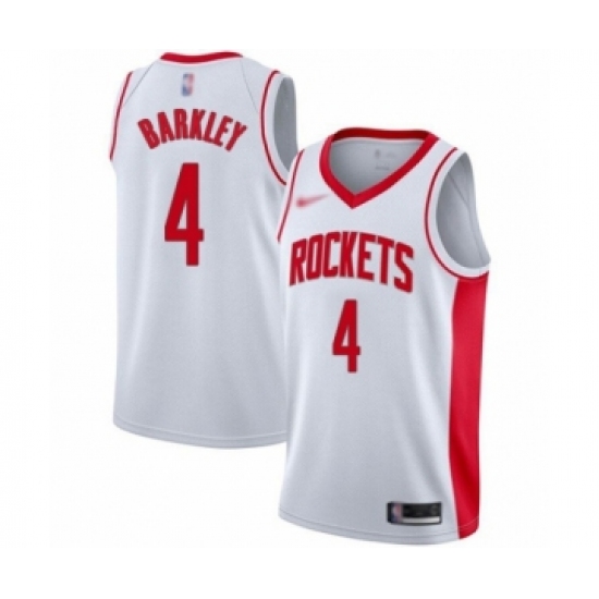 >Men's Houston Rockets #4 Charles Barkley Authentic White Finished Basketball Jersey - Association Edition