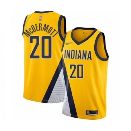 >Men's Indiana Pacers #20 Doug McDermott Authentic Gold Finished Basketball Jersey - Statement Edition