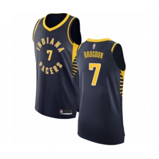 >Men's Indiana Pacers #7 Malcolm Brogdon Authentic Navy Blue Basketball Jersey - Icon Edition