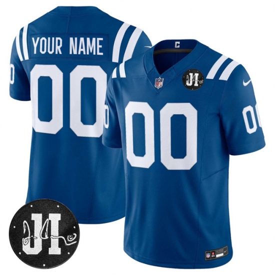 Men's Indianapolis Colts Active Player Custom Blue 2025 F.U.S.E. Jim Irsay Patch Vapor Limited Football Stitched Jersey