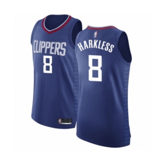 >Men's Los Angeles Clippers #8 Moe Harkless Authentic Blue Basketball Jersey - Icon Edition