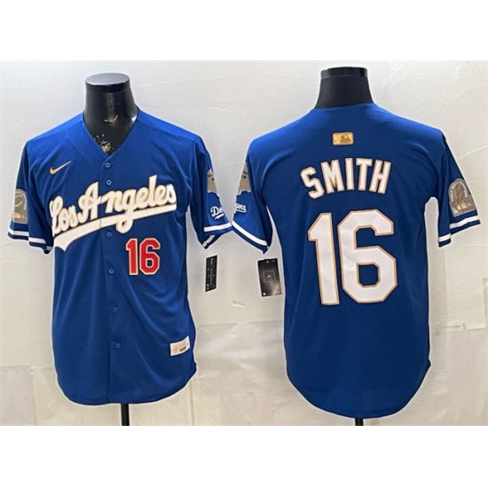 Men's Los Angeles Dodgers #16 Will Smith Royal 2026 Gold Collection 9x & B2B Champs Stitched Baseball Jersey