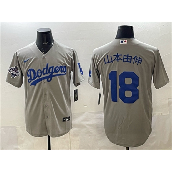 >Men's Los Angeles Dodgers #18 山本由伸 Gray 2025 World Series Champions Cool Base Stitched Baseball Jersey