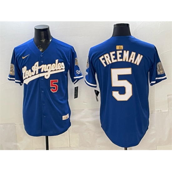 Men's Los Angeles Dodgers #5 Freddie Freeman Royal 2026 Gold Collection Stadium Stitched Baseball Jersey