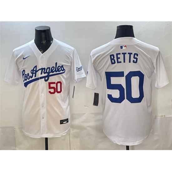 Men's Los Angeles Dodgers #50 Mookie Betts White Alternate Stadium Stitched Baseball Jersey