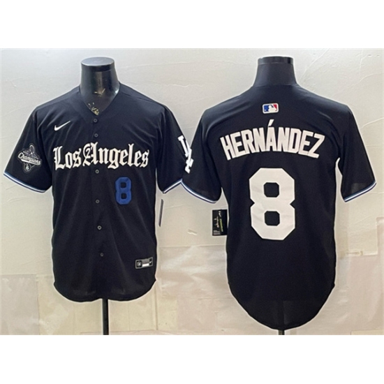 >Men's Los Angeles Dodgers #8 Enrique Hernández Black 2025 World Series Champions 'Gothic Edition' Vapor Premier Limited Stitched Baseball Jersey
