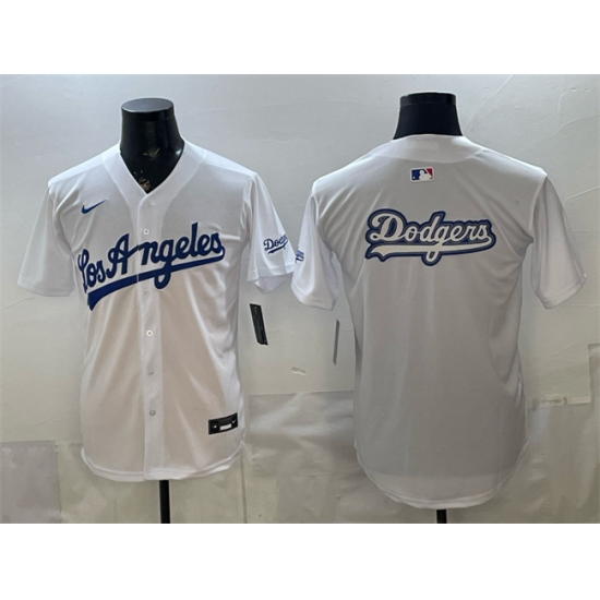 >Men's Los Angeles Dodgers Team Big Logo White Alternate Stadium Stitched Baseball Jersey