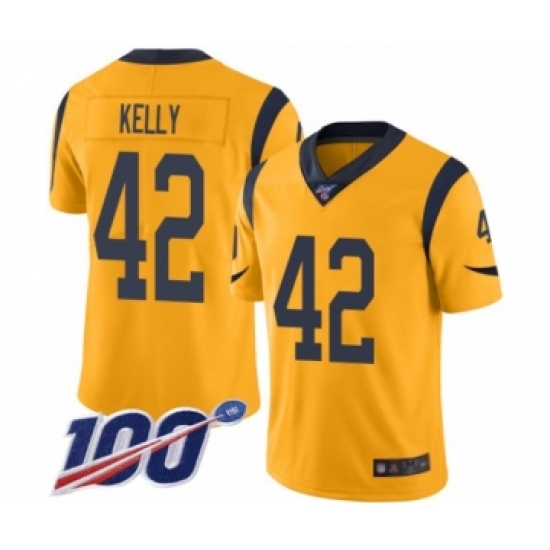 >Men's Los Angeles Rams #42 John Kelly Limited Gold Rush Vapor Untouchable 100th Season Football Jersey