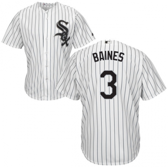 Home>MLB>Chicago White Sox>Harold Baines>Men's Majestic Chicago White Sox #3 Harold Baines White Home Flex Base Authentic Collection MLB Jersey
