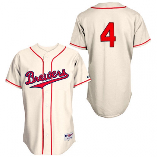 Men's Majestic Milwaukee Brewers #4 Paul Molitor Authentic Cream 1948 Turn Back The Clock MLB Jersey