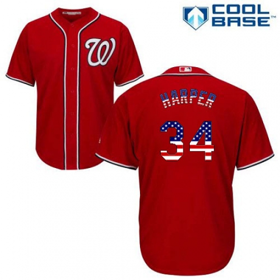 Home>MLB>Washington Nationals>Bryce Harper>Men's Majestic Washington Nationals #34 Bryce Harper Replica Red USA Flag Fashion MLB Jersey