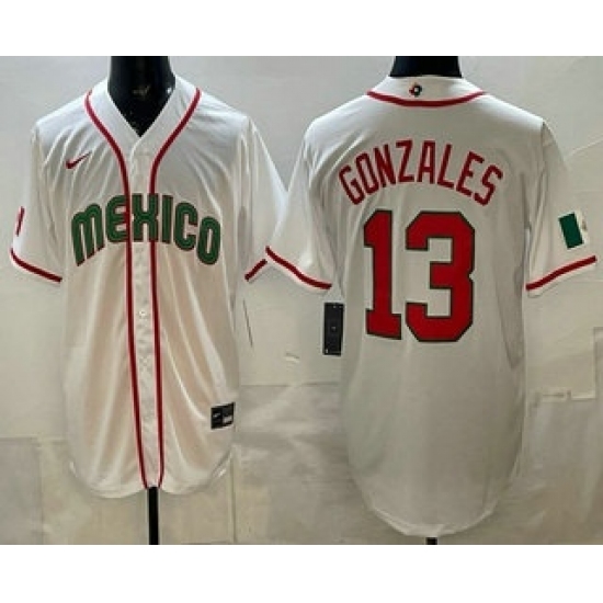 Men's Mexico #13 Nick Gonzales White 2026 World Baseball Classic Cool Base Jersey