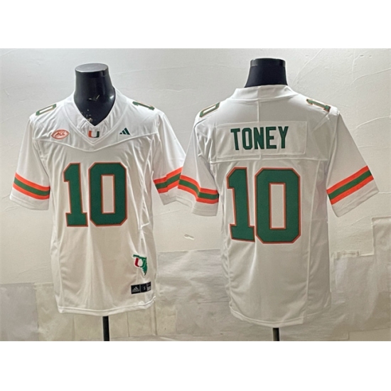 Men's Miami Hurricanes #10 Malachi Toney White F.U.S.E. 2026 Stitched Football Jersey