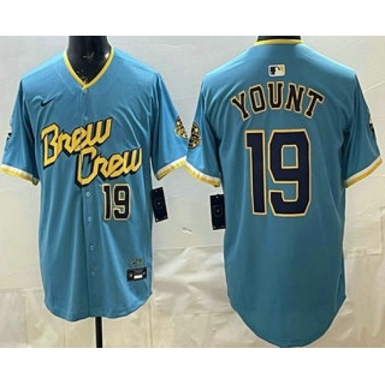 >Men's Milwaukee Brewers #19 Robin Yount Powder Blue Limited Jersey