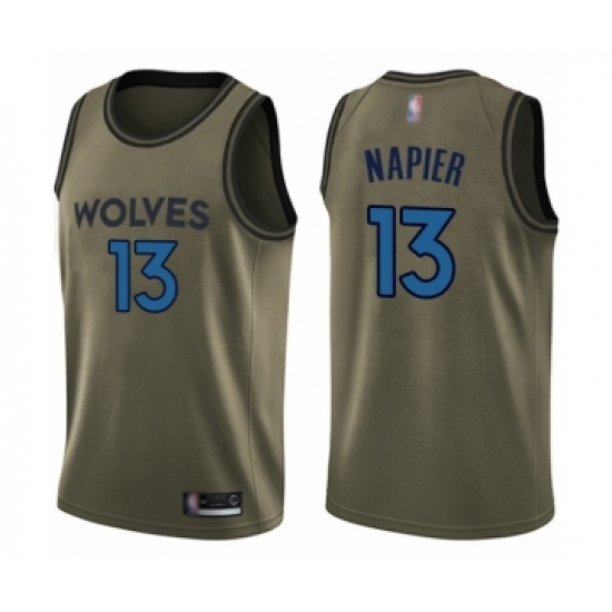 >Men's Minnesota Timberwolves #13 Shabazz Napier Swingman Green Salute to Service Basketball Jersey