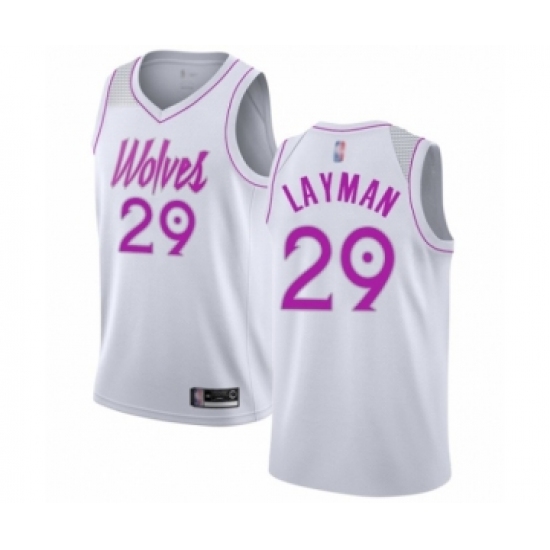 >Men's Minnesota Timberwolves #29 Jake Layman White Swingman Jersey - Earned Edition