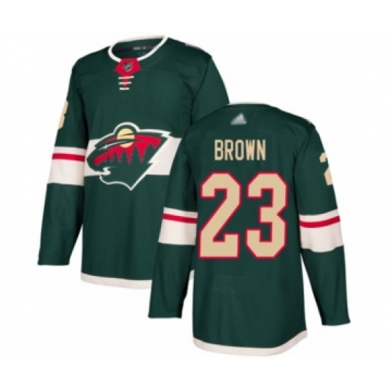 Men's Minnesota Wild #23 J.T. Brown Authentic Green Home Hockey Jersey