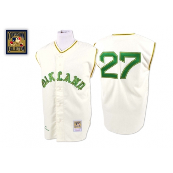 Home>MLB>Oakland Athletics>Catfish Hunter>Men's Mitchell and Ness 1968 Oakland Athletics #27 Catfish Hunter Authentic Cream Throwback MLB Jersey
