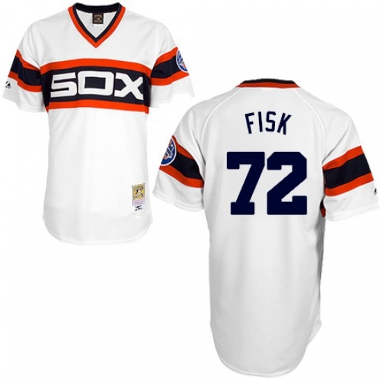 Men's Mitchell and Ness 1985 Chicago White Sox #72 Carlton Fisk Replica White Throwback MLB Jersey