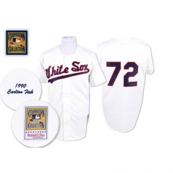 Men's Mitchell and Ness 1990 Chicago White Sox #72 Carlton Fisk Authentic White Throwback MLB Jersey