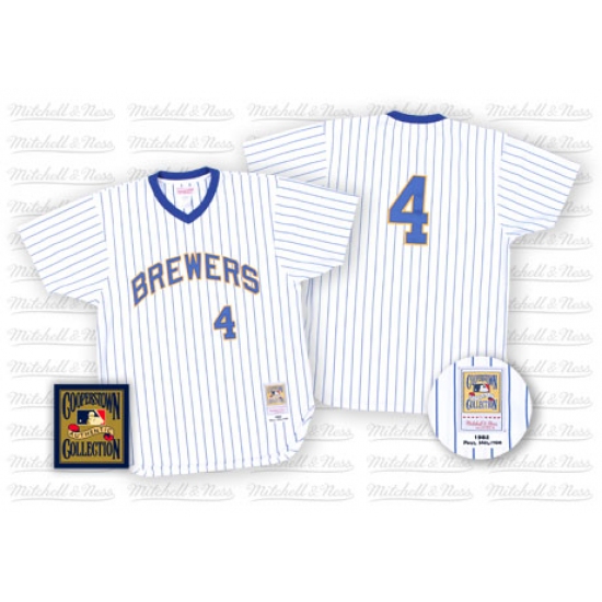 Men's Mitchell and Ness Milwaukee Brewers #4 Paul Molitor Replica White/Blue Strip Throwback MLB Jersey