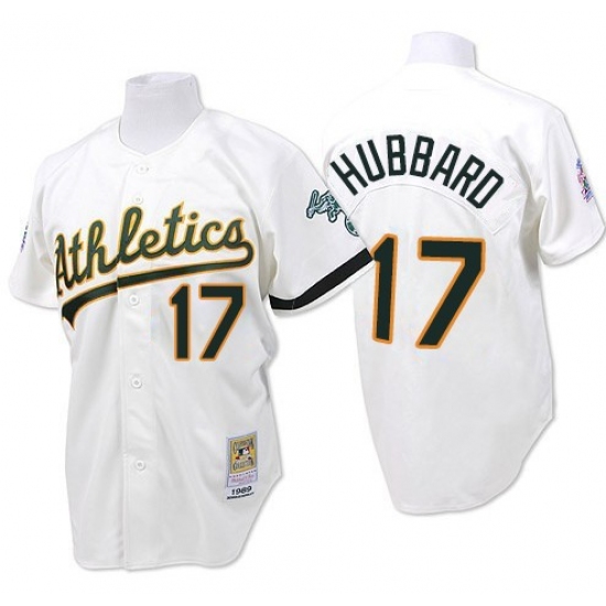 Home>MLB>Oakland Athletics>Glenn Hubbard>Men's Mitchell and Ness Oakland Athletics #17 Glenn Hubbard Replica White Throwback MLB Jersey