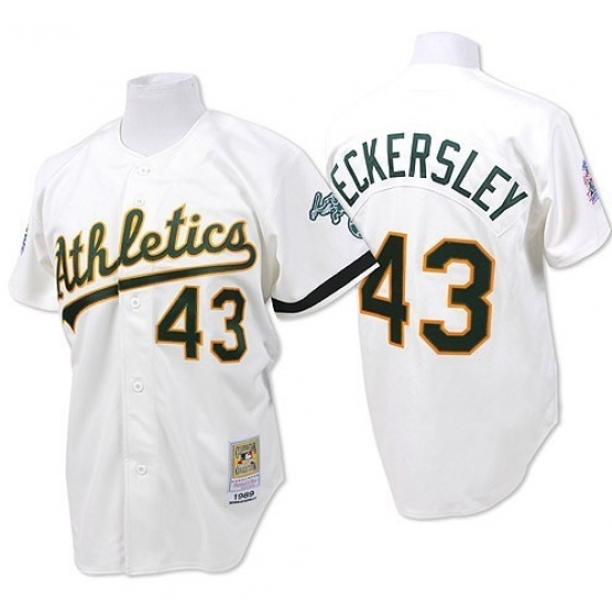 Home>MLB>Oakland Athletics>Dennis Eckersley>Men's Mitchell and Ness Oakland Athletics #43 Dennis Eckersley Replica White Throwback MLB Jersey