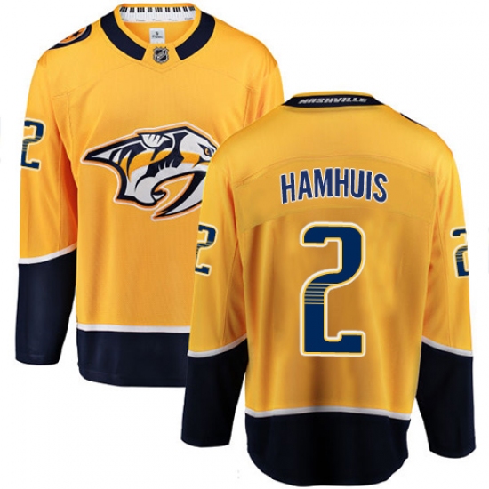 >Men's Nashville Predators #2 Dan Hamhuis Fanatics Branded Gold Home Breakaway NHL Jersey