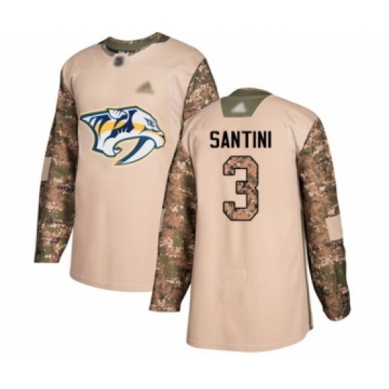>Men's Nashville Predators #3 Steven Santini Authentic Camo Veterans Day Practice Hockey Jersey