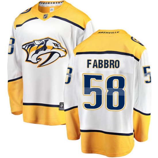 Men's Nashville Predators #58 Dante Fabbro Fanatics Branded White Away Breakaway NHL Jersey