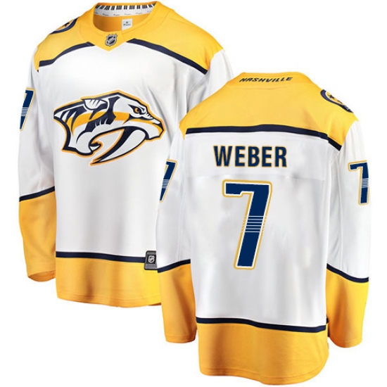 Home>NHL>Nashville Predators>Yannick Weber>Men's Nashville Predators #7 Yannick Weber Fanatics Branded White Away Breakaway NHL Jersey