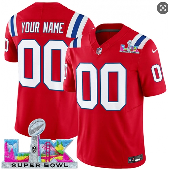 Men's New England Patriots Active Player Custom Red 2025 F.U.S.E. Super Bowl LX Patch Vapor Limited Football Stitched Jersey