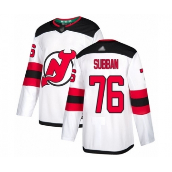 >Men's New Jersey Devils #76 P. K. Subban Authentic White Away Hockey Jersey