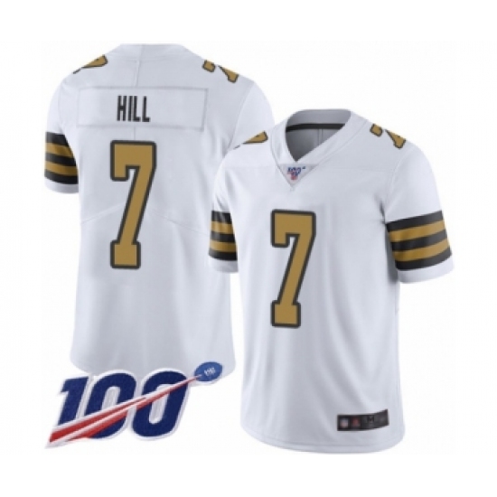 Men's New Orleans Saints #7 Taysom Hill Limited White Rush Vapor Untouchable 100th Season Football Jersey