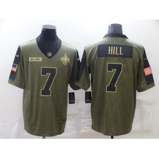 >Men's New Orleans Saints #7 Taysom Hill Nike Olive 2021 Salute To Service Limited Player Jersey