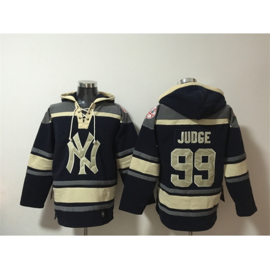 Men's New York Yankees #99 Aaron Judge Navy Blue Ageless Must Have Lace Up Pullover Hoodie