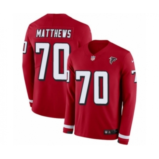 >Men's Nike Atlanta Falcons #70 Jake Matthews Limited Red Therma Long Sleeve NFL Jersey